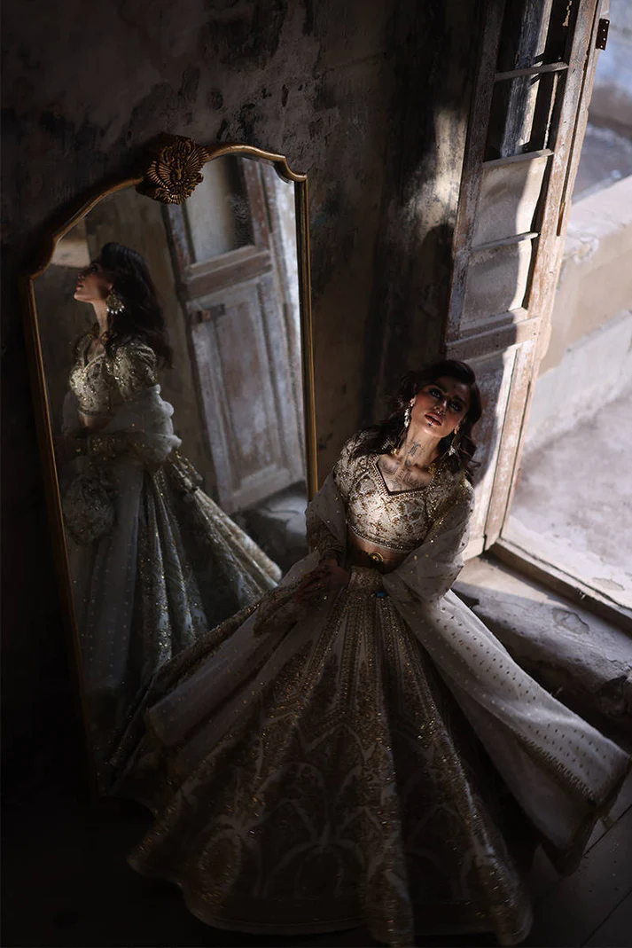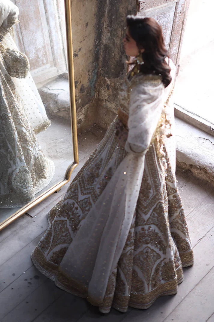 Color: Elegant white with golden embroidery