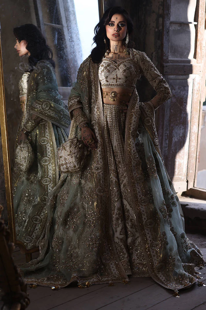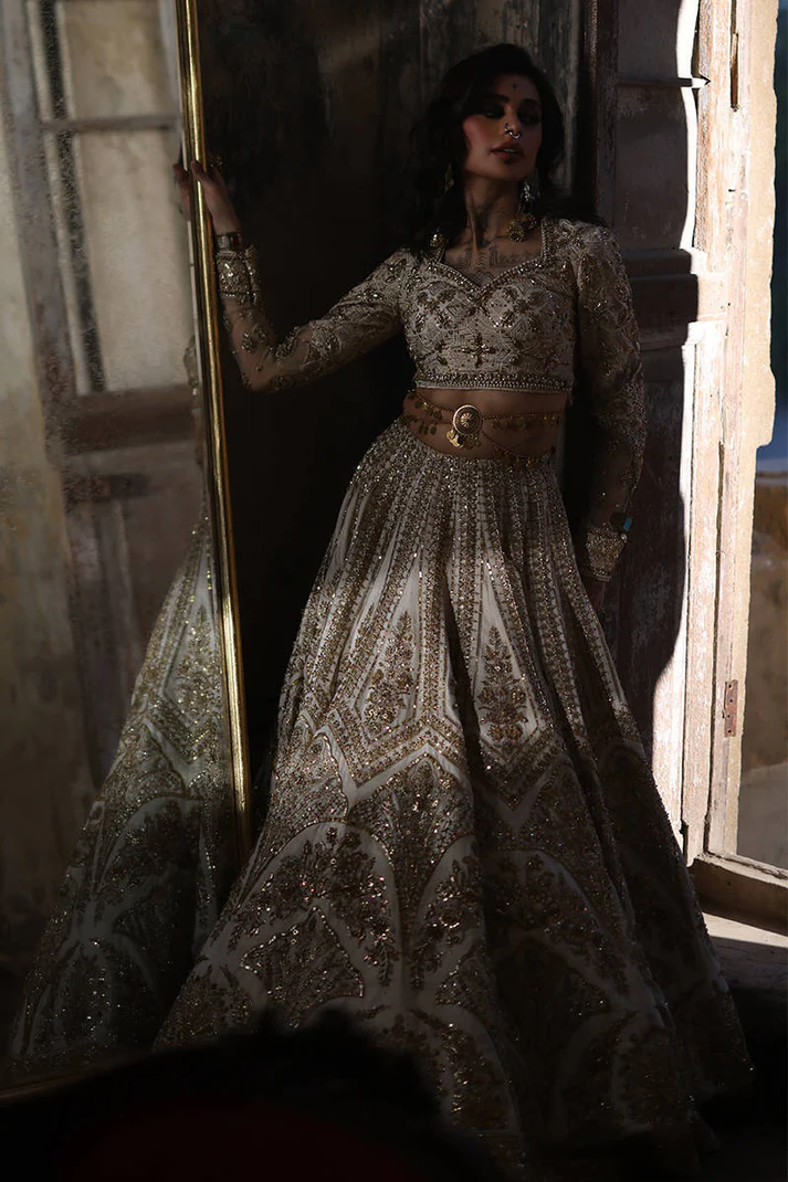 Work: Fine golden zari and sequin detailing