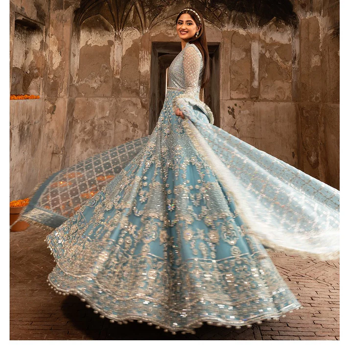 Sleeves: Exquisitely designed with heavy embellishments, sequins, embroidery, and delicate handwork, adding refined sophistication.