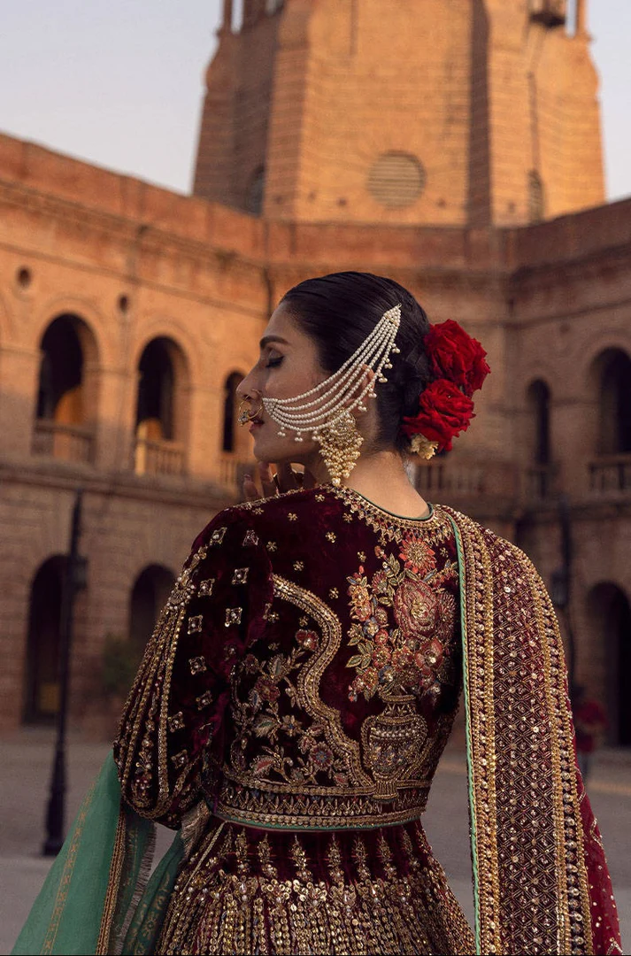 Back: Beautifully adorned with rich embellishments, sequins, and elegant embroidery for a refined finish.
