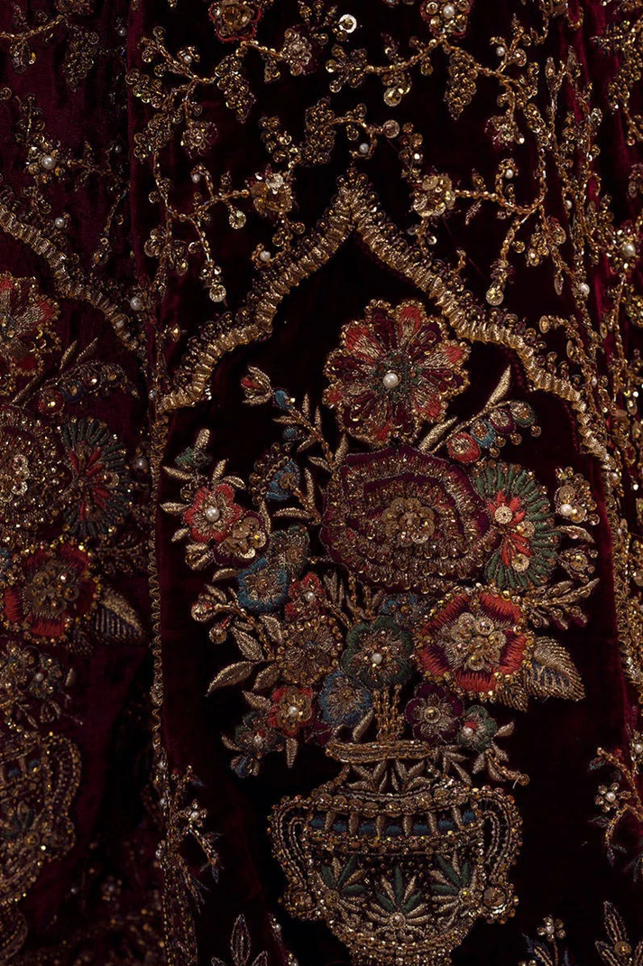 Front Body: Exquisite handwork with heavy sequin and embroidery detailing, adding depth and elegance.