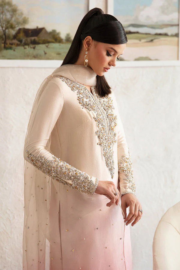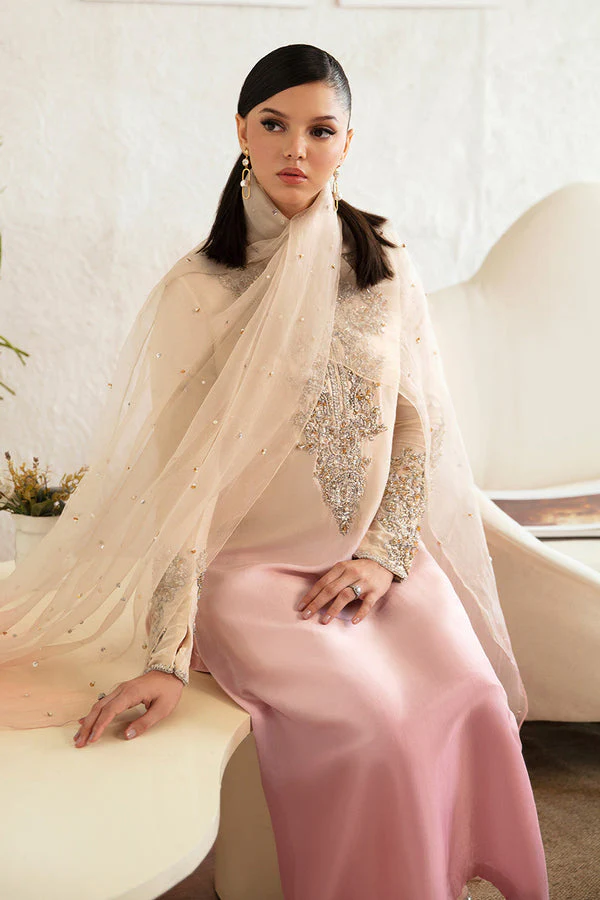 A charming white and pink fancy dress beautifully adorned with soft embroidery and elegant detailing.