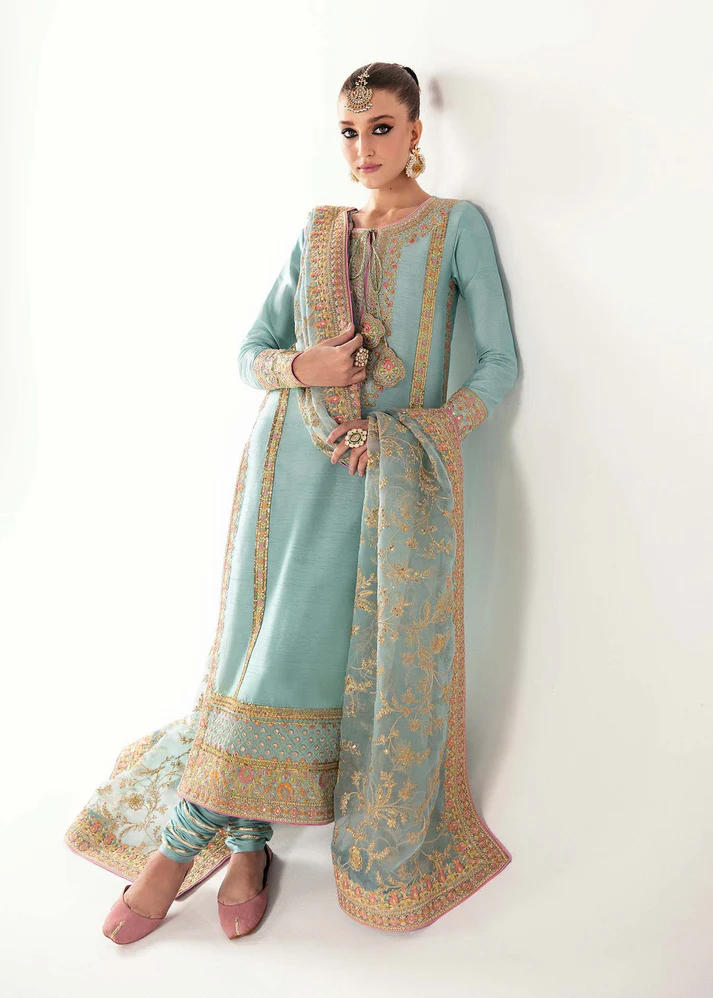 A stunning blue fancy suit adorned with delicate embroidery and subtle embellishments for a refined wedding look.